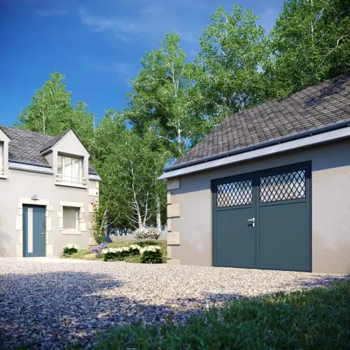 Idéal pour concevoir une entrée personnalisée, les portes de garage battantes se déclinent selon les couleurs et les dimensions de votre choix.
